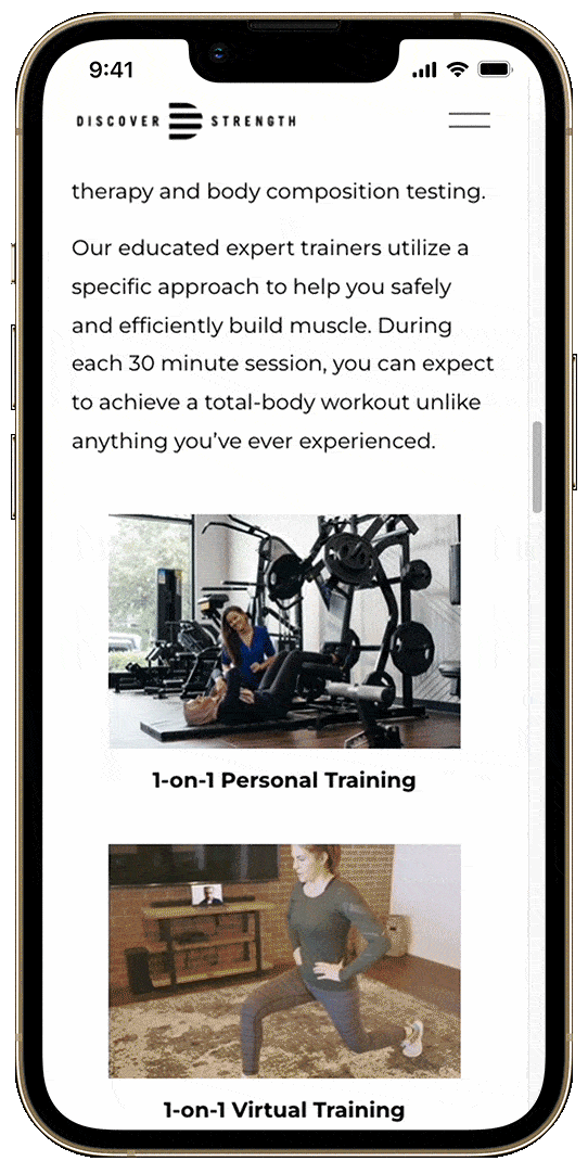 Strong design starts with good user research. We delved deep into understanding Discover Strength’s client base and long-term franchise goals, keeping in mind their rapid expansion. Our focus was on emphasizing their evidence-based training regimens and their personalized workouts tailored to each individual's needs and goals.